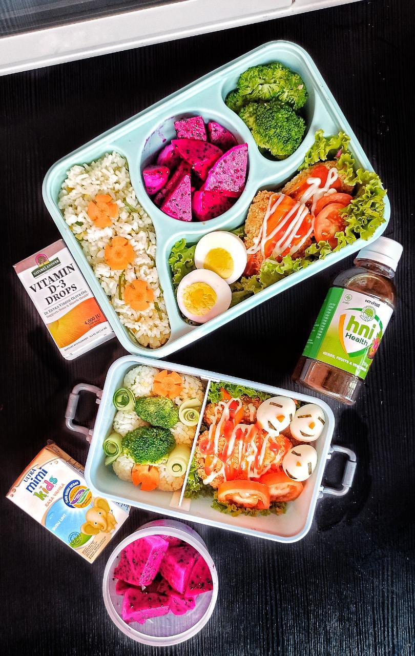 Bekal makan anak siap disajikan dengan sayur, buah dan kudapan favorit si kecil. Dan kreasikan sesuai masing-masing yaa.