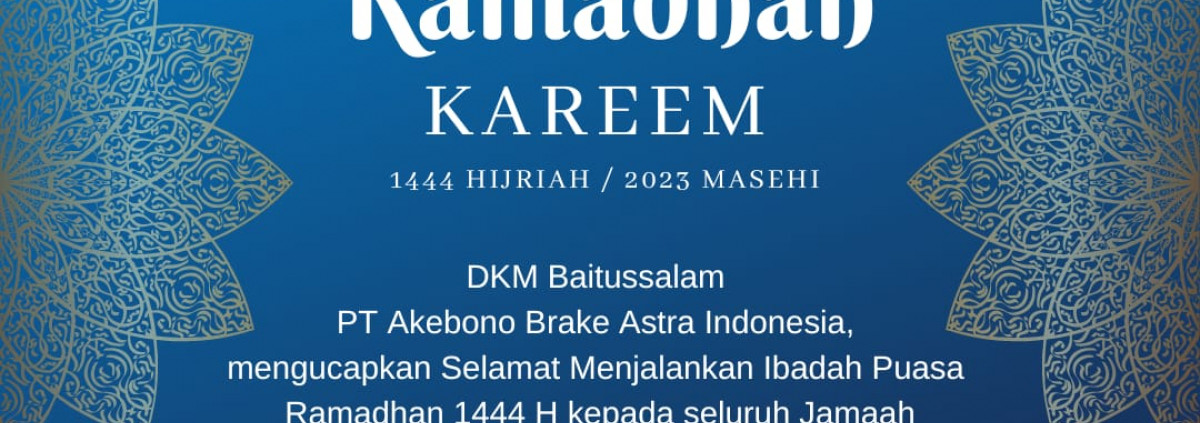 Di hari pertama Ramadhan 1444 H, DKM Baitussalam PT Akebono Brake Astra Indonesia mengucapkan Selamat Menjalankan Ibadah Puasa Ramadhan 1444 H. Semoga kita dimudahkan dan dilancarkan hingga penghujung Ramadhan dan kita menjadi orang-orang yang bertakwa.