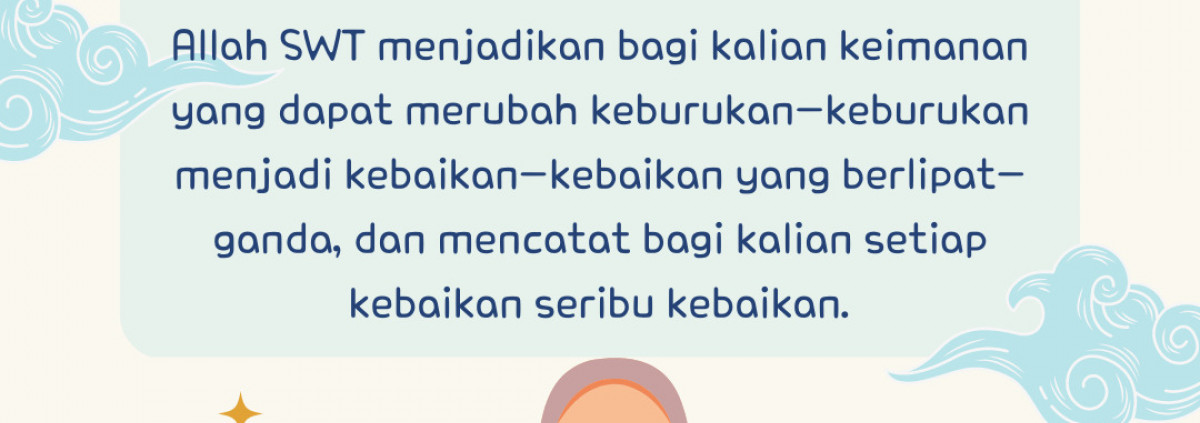 Hari ke-12: Allah SWT menjadikan bagi kalian keimanan yang dapat merubah keburukan-keburukan menjadi kebaikan-kebaikan yang berlipat-ganda, dan mencatat bagi kalian setiap kebaikan seribu kebaikan.