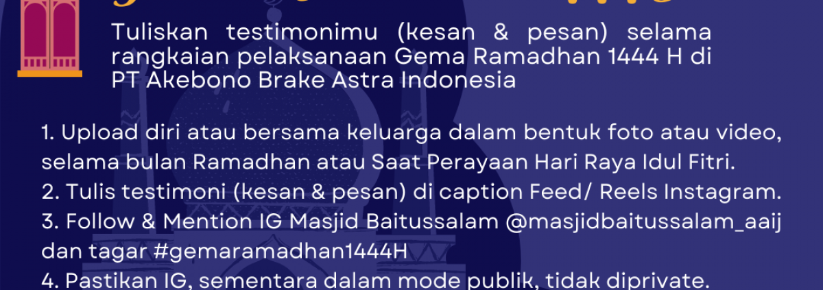 Yuk, sampaikan testimoni (kesan dan pesan) Saudara pada pelaksanaan Gema Ramadhan 1444 H di PT Akebono Brake Astra Indonesia.