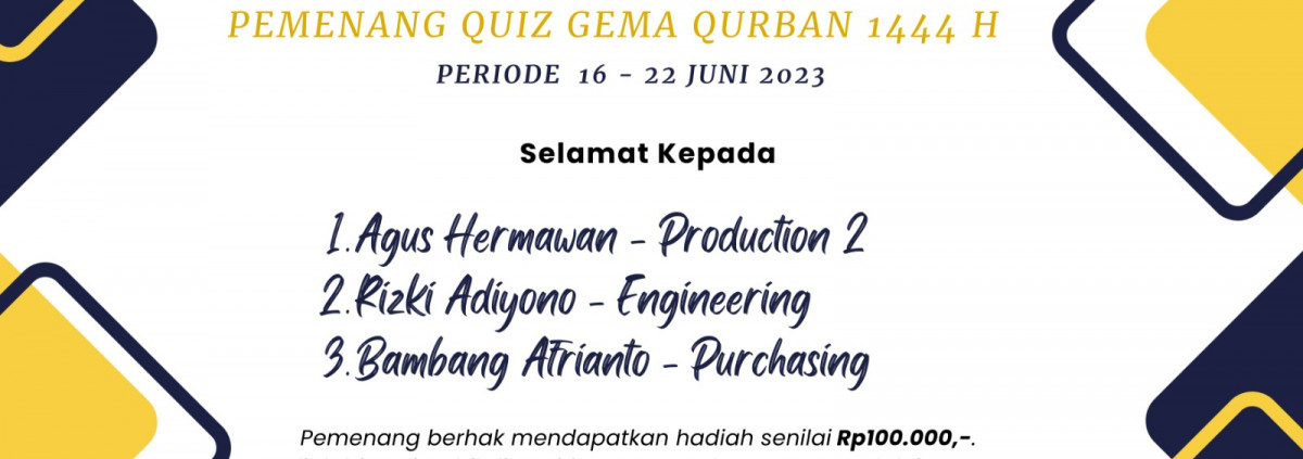 Selamat kepada Para Pemenang Quiz Gema Qurban 1444 H Tupon Setiawan Panitia Gema Qurban 1444 H DKM Baitussalam PT Akebono Brake Astra Indonesia