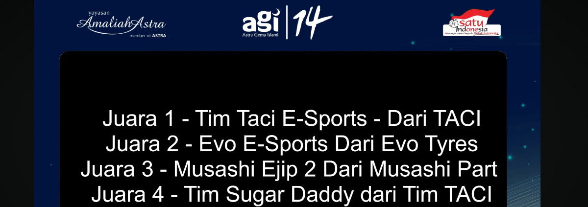 Alhamdulillah Wa Syukurillah, telah kita lewati salah satu lomba di ajang paling bergengsi yang dinantikan setiap tahunnya oleh seluruh Insan Muslim Astra, dimana kalau bukan di ajang Astra Gema Islami ke-14 ditahun ini. Lomba yang telah kita lalui adalah Kambing Cup di E-Sport MLBB.