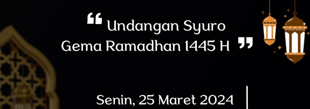 Mengundang kehadiran Panitia untuk Syuro Gema Ramadhan pada Senin, 25 Maret 2024 pukul 10.15 - 12.00 di Masjid Baitussalam.