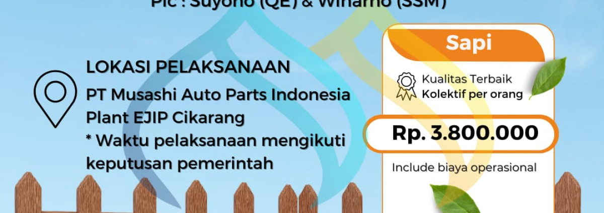 Adapun pelaksanaan Qurban sendiri akan dilaksanakan di PT Musashi Auto Parts Indonesia yang beralamatkan di kawasan industri Ejip, Cikarang Kabupaten Bekasi Jawa Barat.