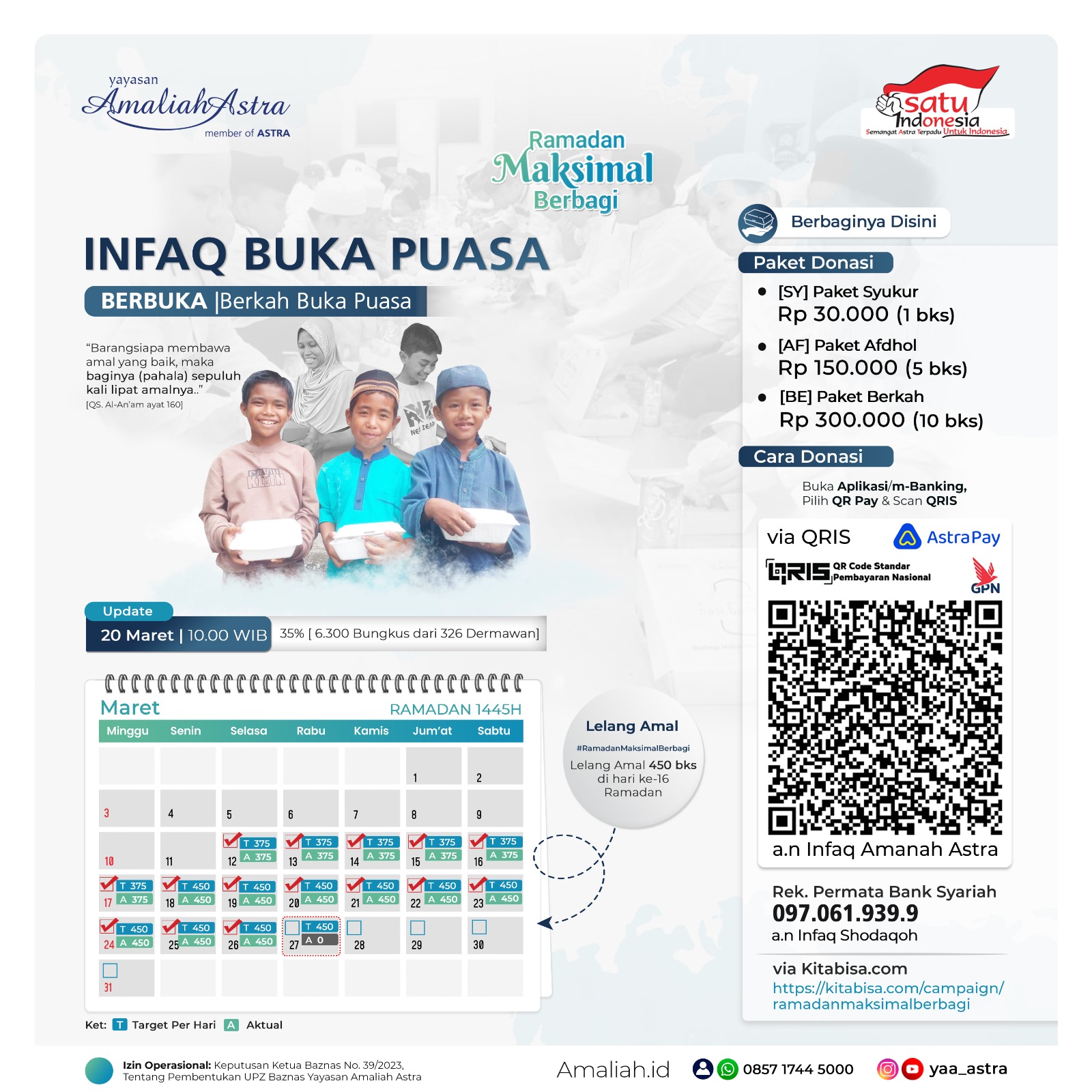 • Ladang Amal: 450 bungkus di hari ke-16 Ramadan (Target Manfaat 450 orang/hari)