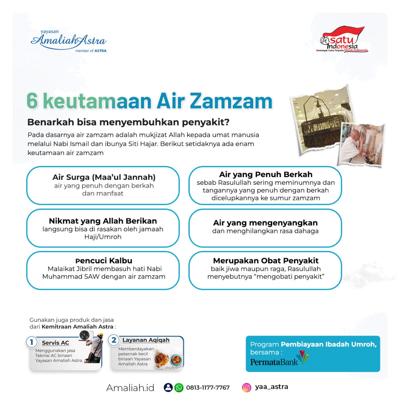 Sebelum melakukan perjalanan Umroh atau Haji, Yuk simak kembali apa saja keutamaan dari air zamzam. Mulai dari air surge, hingga air yang dapat menyembuhkan penyakit. Keutamaan air zamzam ini bisa bermanfaat bagi siapa saja yang meniatkan kebaikan dari meminumnya.